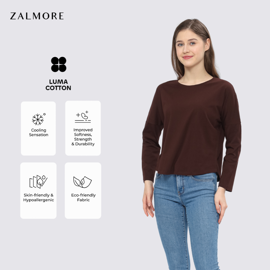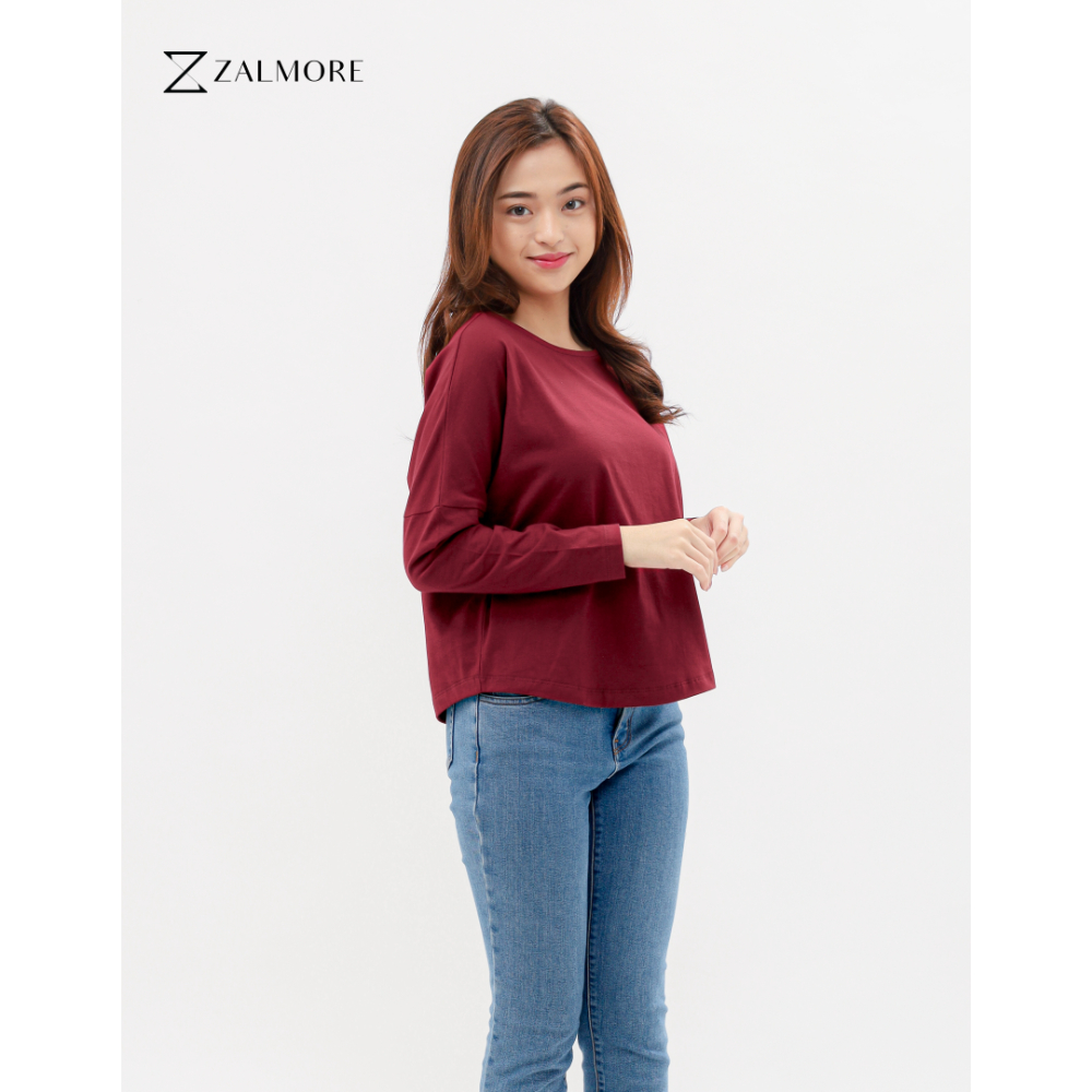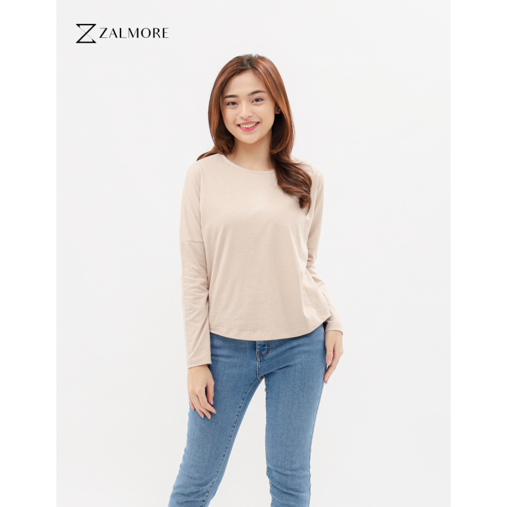 SURFBOARD SHOP Zalmore Luma Cotton Longsleeve Loose Tee Premium Cotton - Kaos Lengan Panjang Wanita