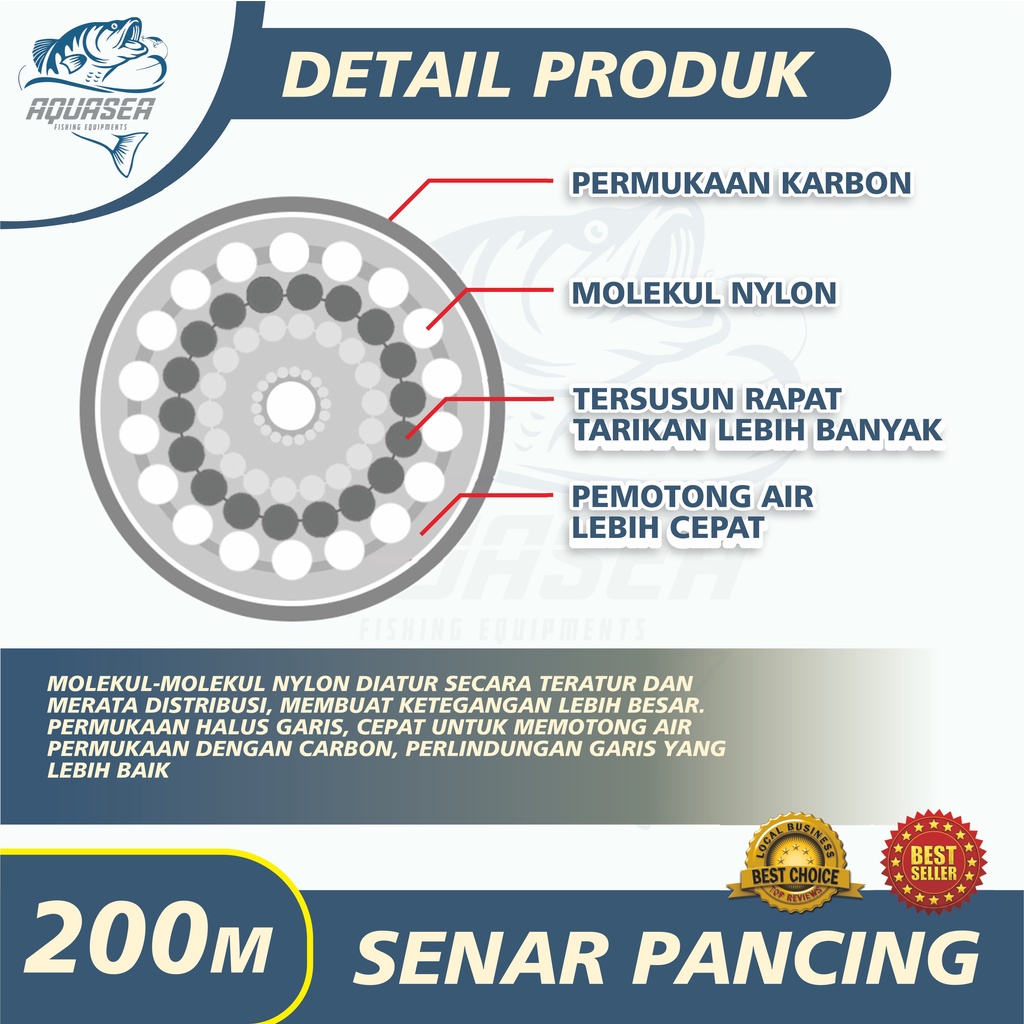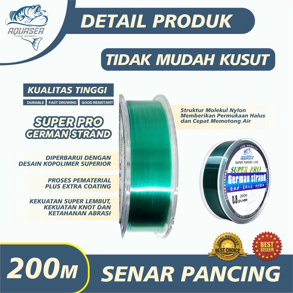 NAKAMA_SHOP AQUASEA Tali Pancing Hijau Germany 200m Senar Pancing Nilon Tahan Lama Panjang anti keriting kuat