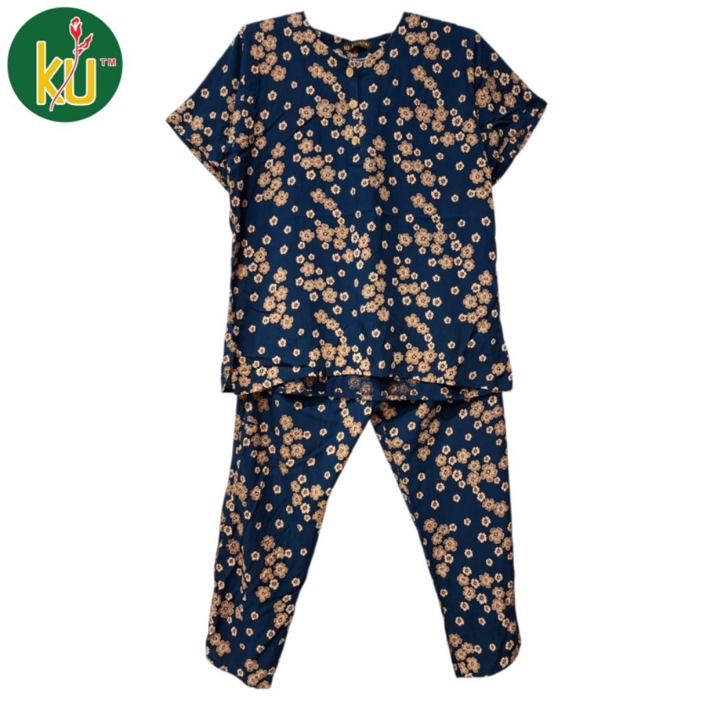 BABINA STORE Kencana Ungu Setelan CP Label KU Prabu Hitam Celana Panjang - Lengan Pendek