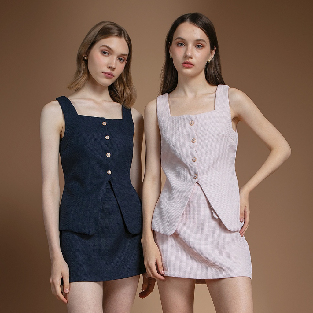 BABINA STORE Chocochips - Ravelia Top | Serena Skirt / Atasan Tanpa Lengan Wanita / Rok Mini A-Line Casual