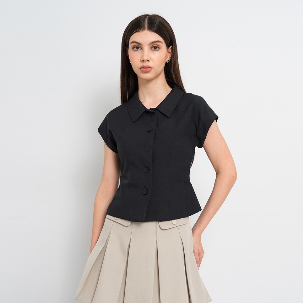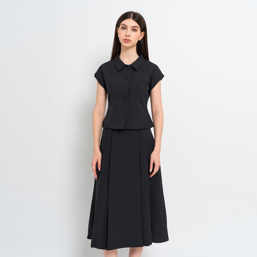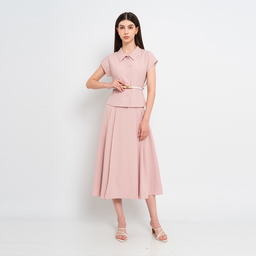 BABINA STORE Chocochips - Parisia Top | Petra Skirt / Set Atasan Kancing dan Rok Midi Flowly Look Feminim Elegan