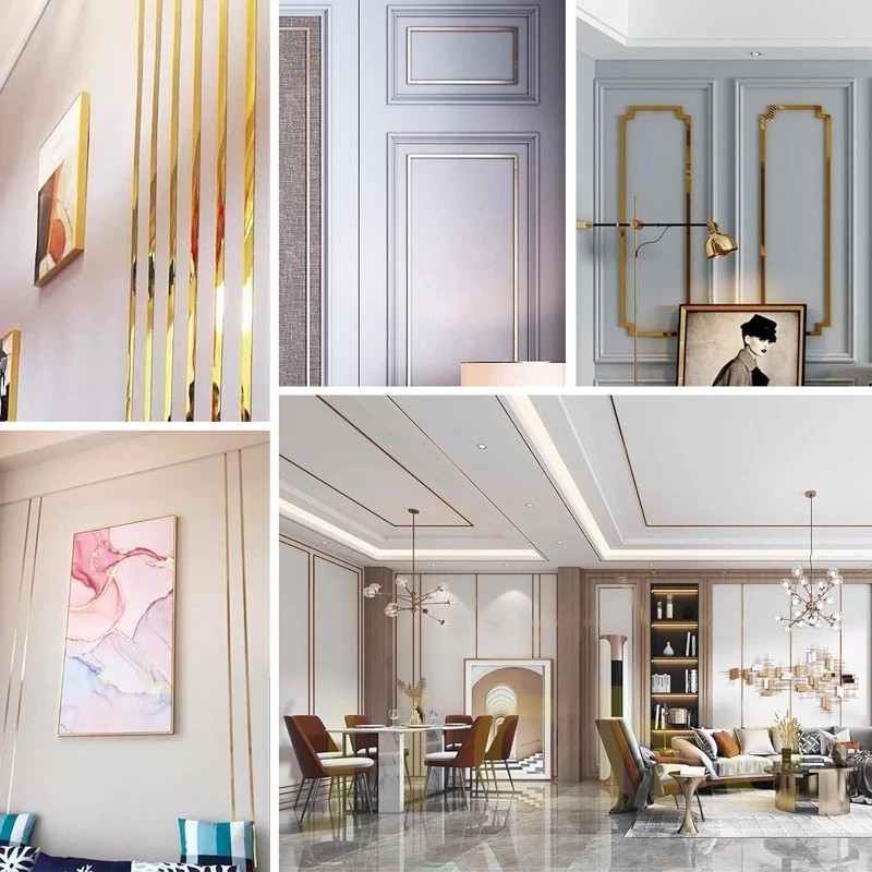 AVROL STORE 3M/5M/12M List Plat Strip Mirror Gold Stainless SS201 Steel Flat Decorative Lines 3D Berperekat Stiker Dekorasi Lantai Keramik Interior