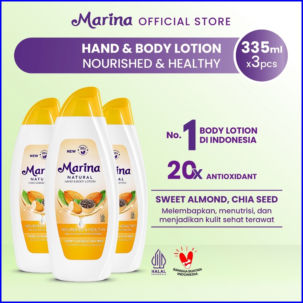 Marina Natural Hand And Body Lotion - Nourish Healthy 335 Ml 3 Pcs - Exp 08.2027