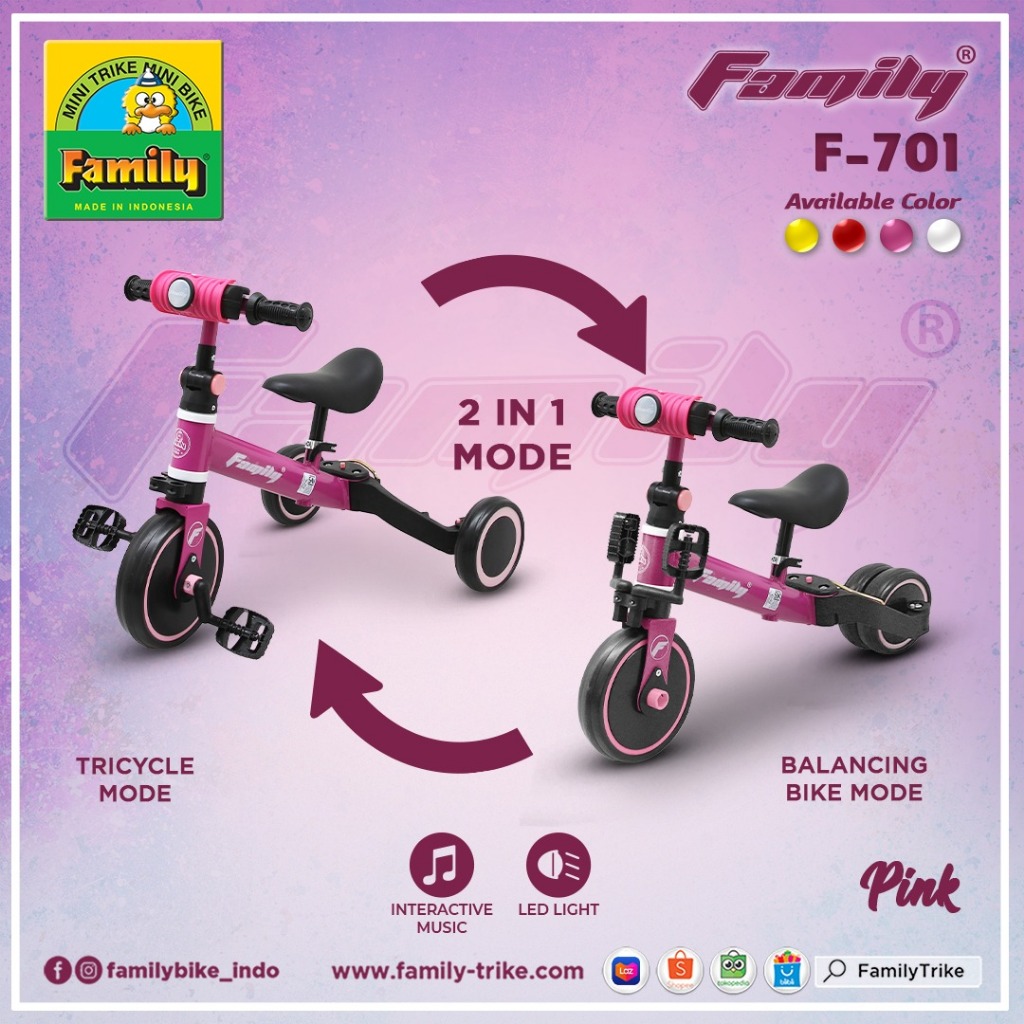 Family Balance Bike F-701 / Sepeda Anak Roda 3 / Sepeda Keseimbangan Anak Tricycle Stroller Anak 2 in 1 Lampu dan Musik