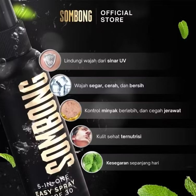 Sombong Face Wash 5in1, Sunscreen spray with Brightening serum Spray 5in1