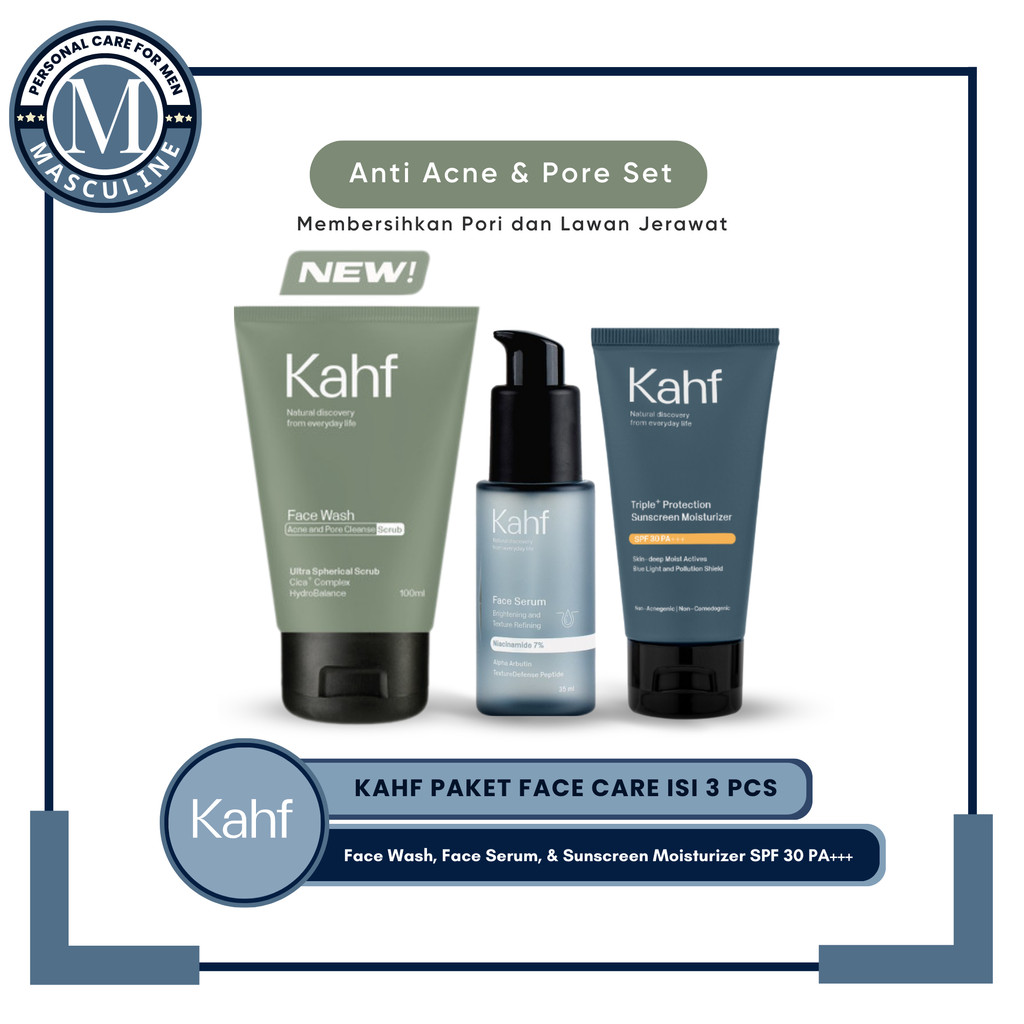 Kahf Paket Face Care Isi 3 pcs - Face Wash, Serum, & Sunscreen