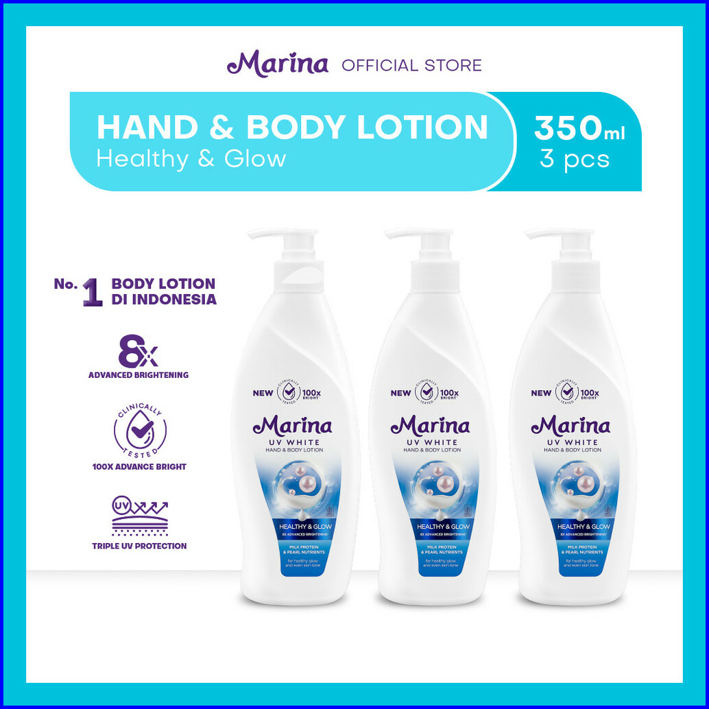 Marina Hand Body Lotion Uv White - Healthy Glow Pump 350 Ml 3pcs - Exp 09.2027