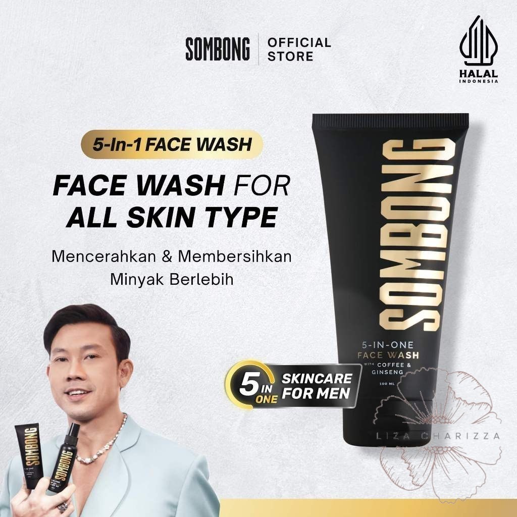 SOMBONG 5-in-1 Face Wash with Coffee & Ginseng Sabun Pembersih Wajah Pria 100 mL | Men's Skin Care