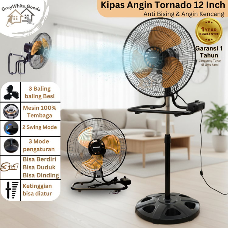 Kipas Angin Besi Tornado Fan 12” 3in1 Wall Fan Hemat Daya Kencang/Wall Fan/Elektronik/Kipas Angin Tempel Dinding/Kipas