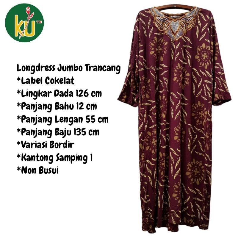 BABINA STORE Kencana Ungu Longdress Jumbo Trancang Label Cokelat LD 126 Non Busui