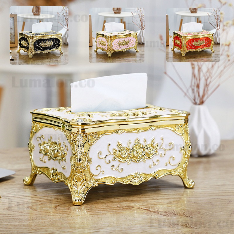 Ornamen Kotak Tisu Vintage Ornamen Kotak Tisu Mawar Emas Ornamen Kotak Tisu Tepi Emas Dekorasi Rumah Ornamen Kotak Tisu