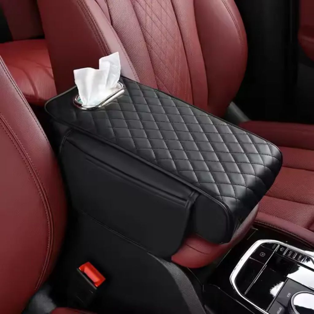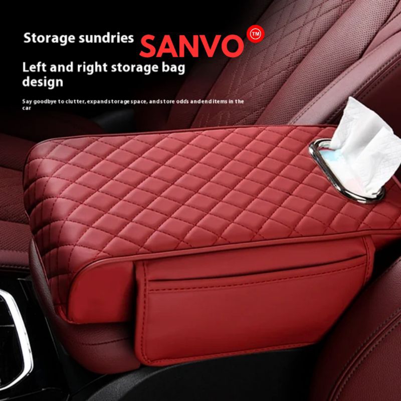 Sanvo 3 in 1 Leather Car Seat Armrest & Tissue Box / 3 in 1 Alas Tangan LUXURY QUALITY, Kantong Multi Fungsi dan Tempat