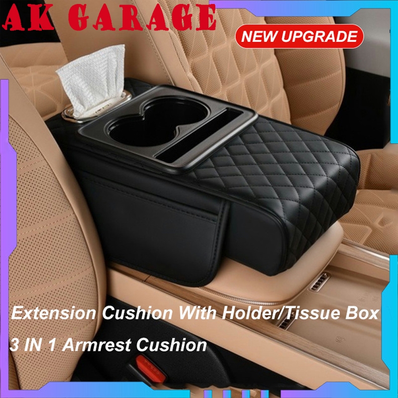 Armrest Pad Mobil Kotak Tisu Mobil Tempat Botol 4 In 1 / Console Box Storage / Cover Tisu Premium