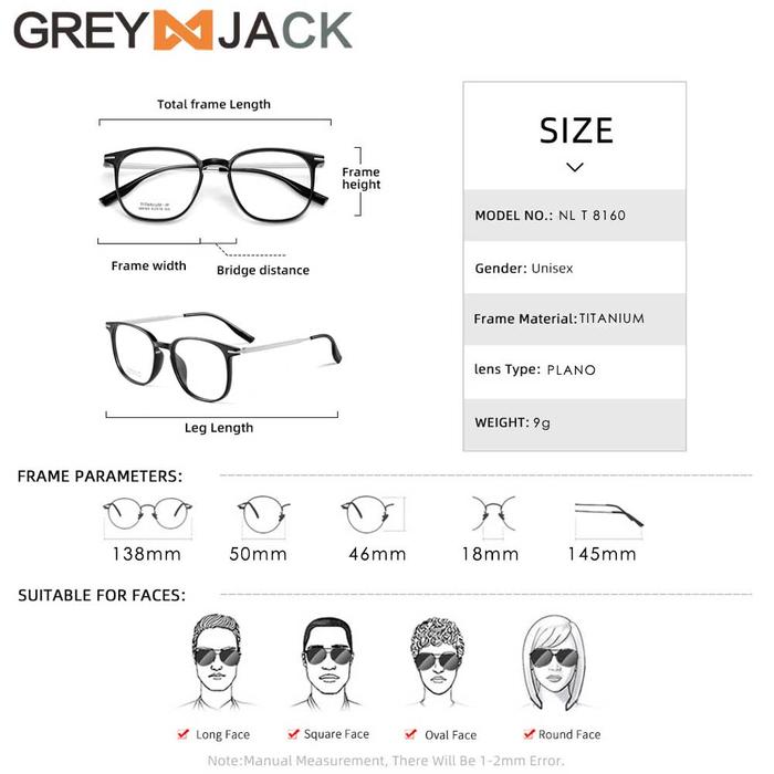 GREY JACK KACAMATA BAHAN TITANIUM IP BISA MINUS ANTIRADIASI BLUERAY BLUECROMIC PRIA WANITA 8160 - BLACK s1lverr, FRAME SAJA
