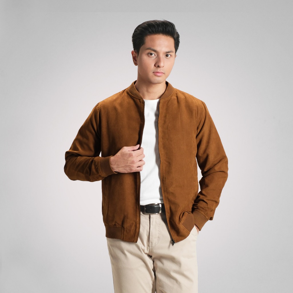 NOEH TOKO ONNLINE CUTOFF Shawn Bomber Jacket Suede Outer Double Pocket Premium Pria Lengan Panjang