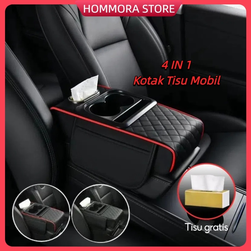 4 in 1 Armrest Pad Mobil Kotak Tisu Mobil Tempat Botol 4 In 1 / Console Box Storage / Cover Tisu Premium / Kotak Tissue