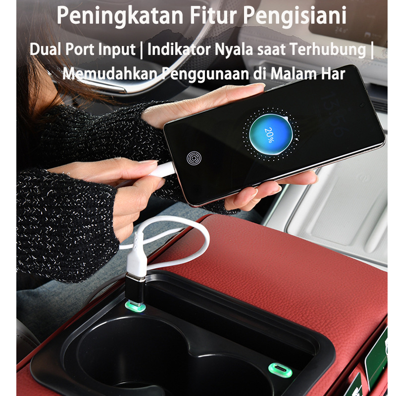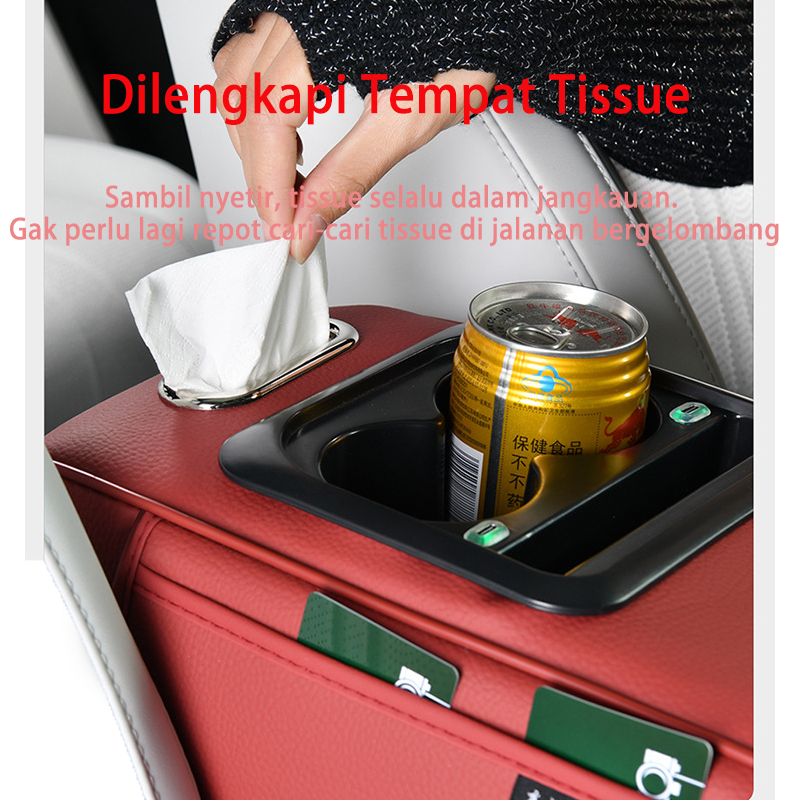 Armrest Pad Mobil + Chas HP + Kotak Tisu Mobil Tempat Botol 5 In 1 Premium Quality / Console Box Storage / Cover Tisu Pr