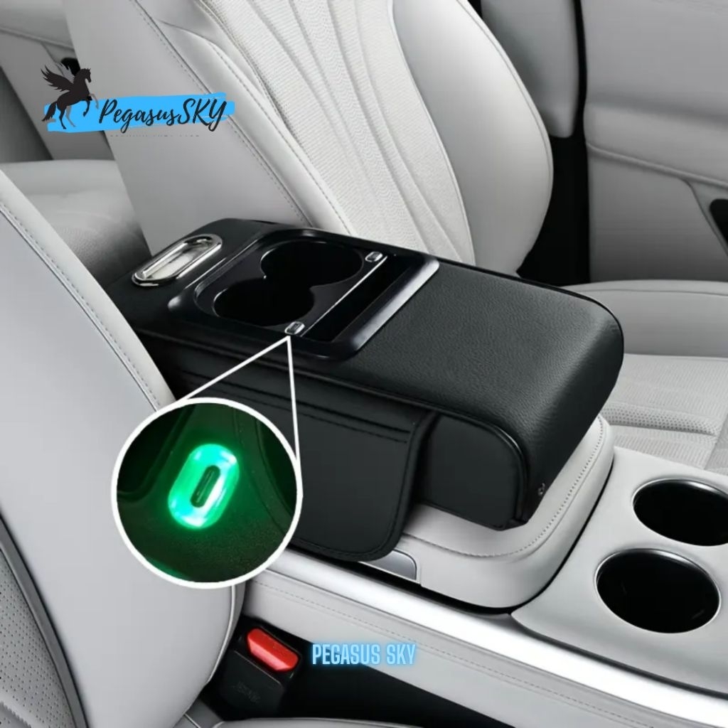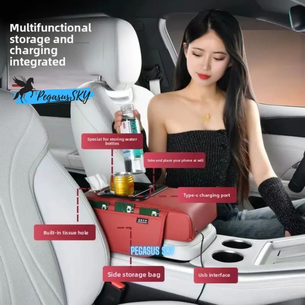 Premium Auto Care Armrest Pad Mobil + USB Charging HP + Kotak Tisu Mobil Tempat Botol 5 In 1 Premium Quality / Console B