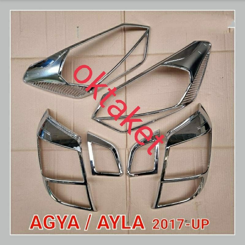 Paket garnish lampu depan dan belakang new Agya Ayla 2017 2020 2022 GR Sport Hitam Chrome jsl cover garnis lampu