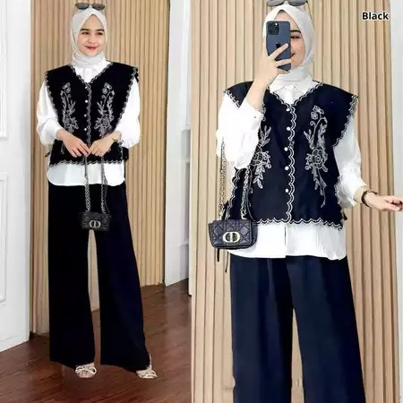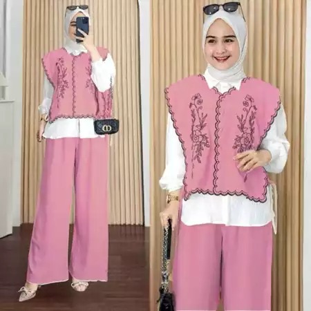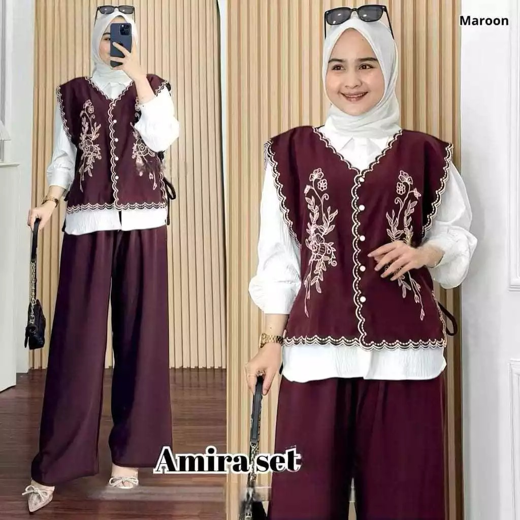 BAJU CEWEK - SETELAN CEWEK - ONE SET - NEW AMIRA ONE SET BORDIR BUNGA POLOS ONE SET TERBARU