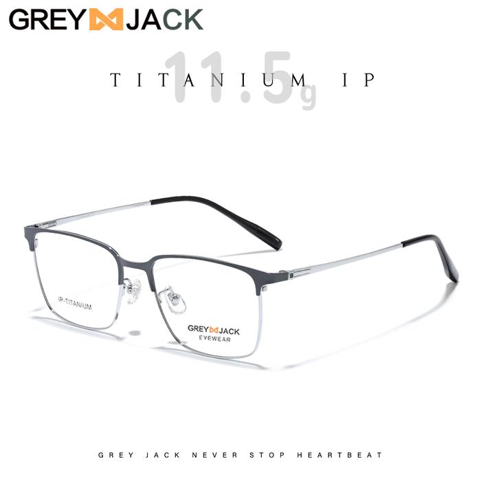 GREY JACK KACAMATA FRAME MODEL KOTAK TITANIUM MODEL KOTAK RINGAN KOKOH FASHION PRIA WANITA BISA MINUS 98610 - BLACK s1lverr, FRAME SAJA