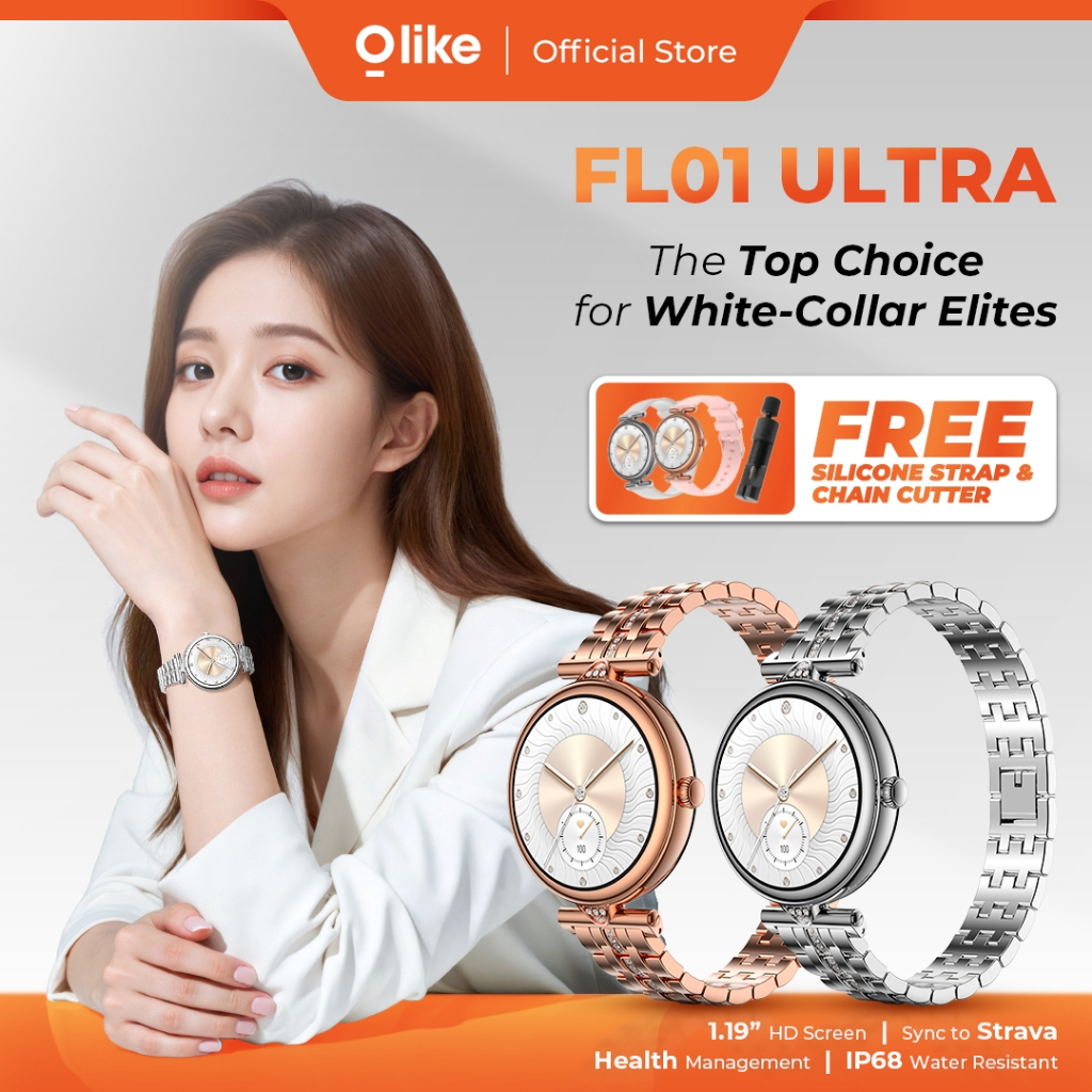 OLIKE Smartwatch Jam Tangan FL01 Ultra Wanita 1.19" Amoled Screen Sync Strava Battery 20 Day IP68 Sport Health Monitor