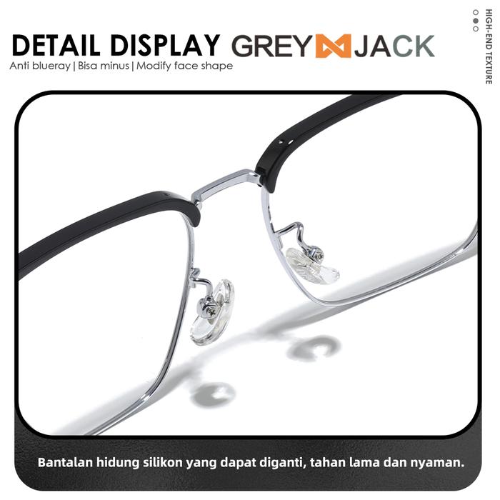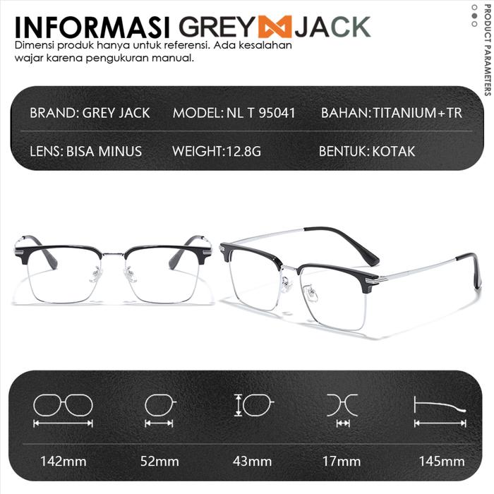 GREY JACK KACAMATA FRAME MODEL KOTAK TITANIUM FASHION BISNIS PRIA WANITA BISA MINUS ANTIRADIASI BLUECROMIC 95041 - BLACK s1lverr, FRAME SAJA