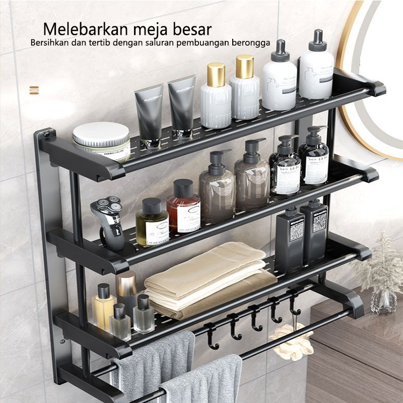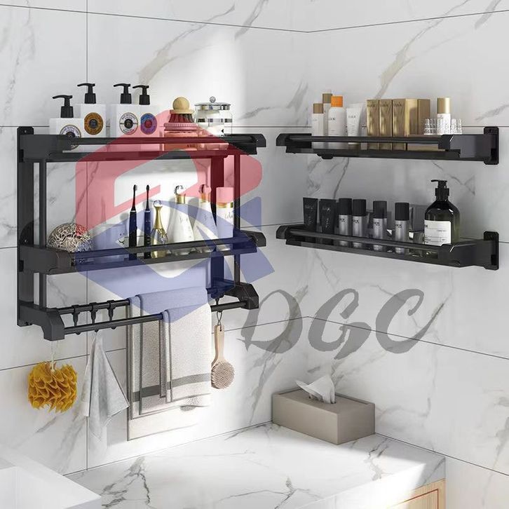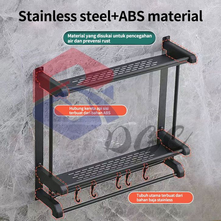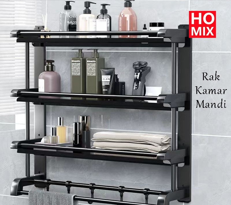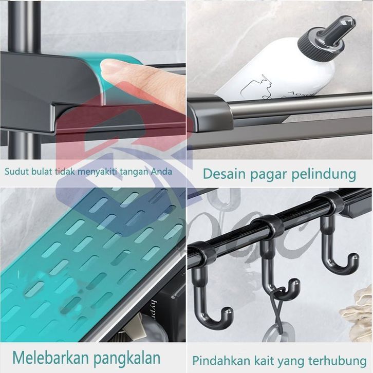 Rak Sabun Kamar Mandi Stainless Hitam Dinding Bumbu Dapur Dipasang Tanpa Harus Dilubangin Dibagian