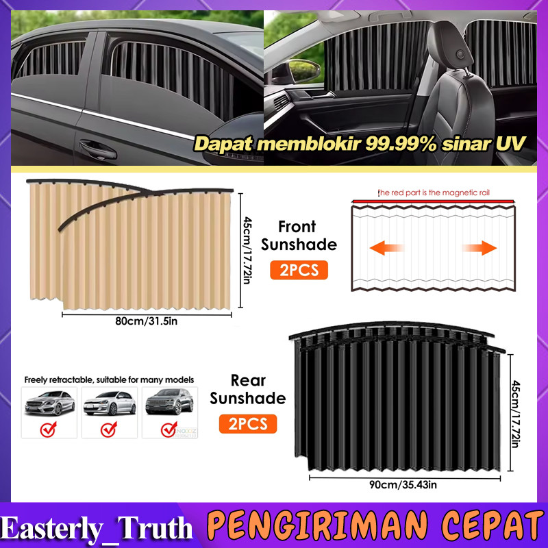 Tirai Jendela Mobil 4set Gorden Mobil Kaca Samping Magnet Premium 4Sisi Jendela Mobil sunshield
