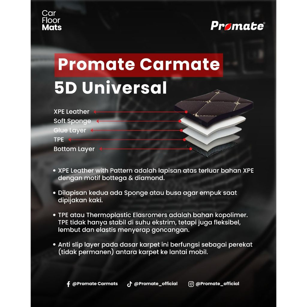 Bakoel Aksesoris Karpet Mobil Kulit 3 Baris 6 Pcs - Baris Universal 7D Car Mats Leather Waterproof Premium Mudah Di Bers