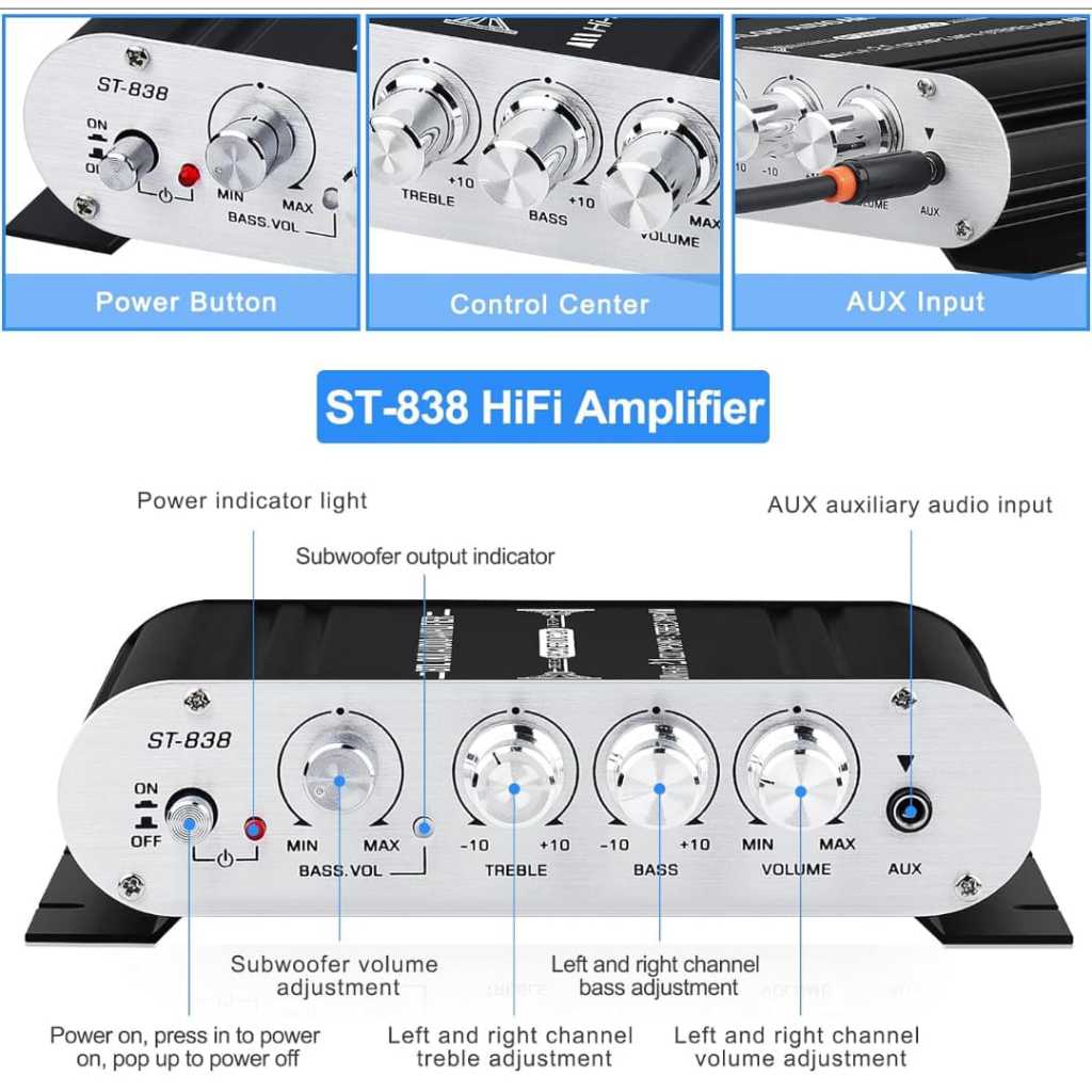 kerndy Car 3 Channel Hifi Stereo Amplifier Treble Bass Booster ST-838