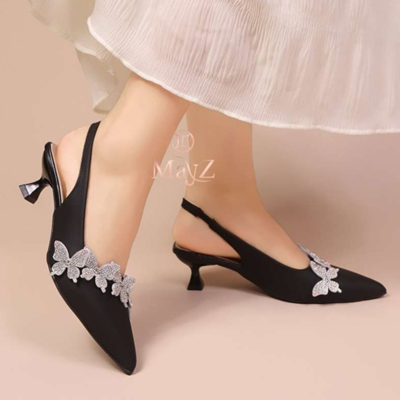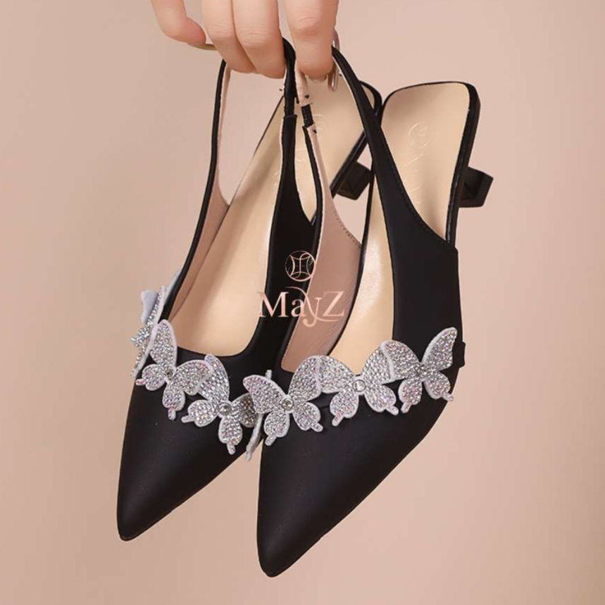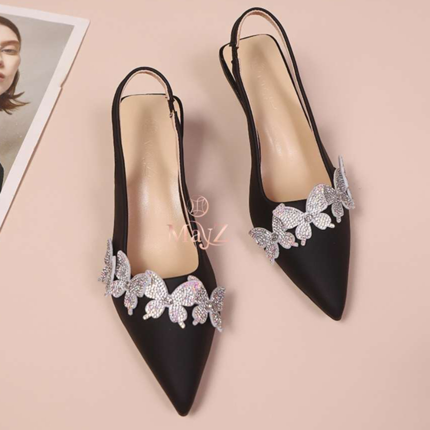 MAYZ Fairalyn Heels Wedding Wanita Elegan Butterfly Sepatu Pesta Slingback Mewah Kekinian 317