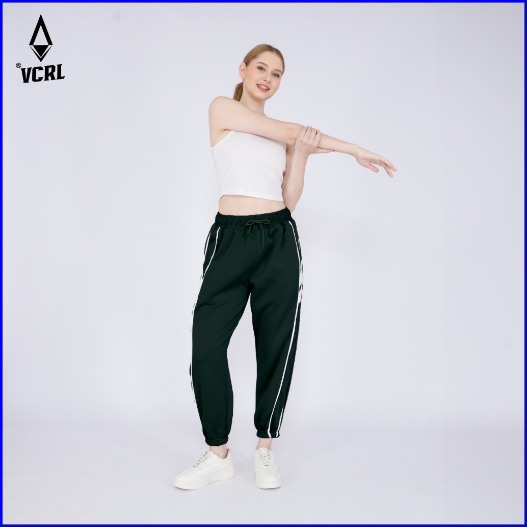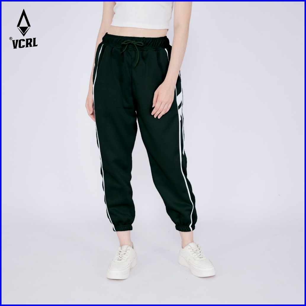 Vcrl Celana Jogger Sweatpants List Wanita Bahan Fleece Tebal Premium Adem Nyaman Lembut Stylish