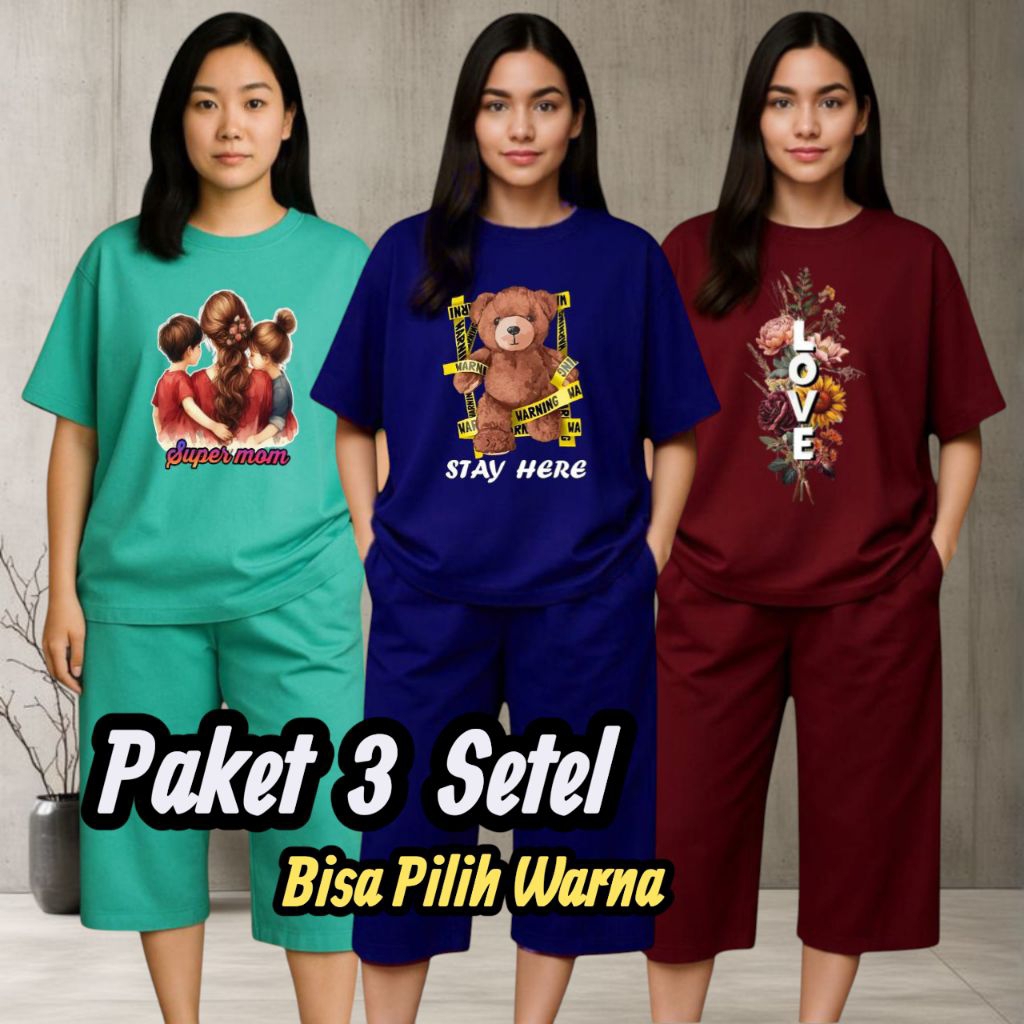 3 Pcs Setelan Kulot Wanita Jumbo 3/4 Paket Hemat 3 Setel Random