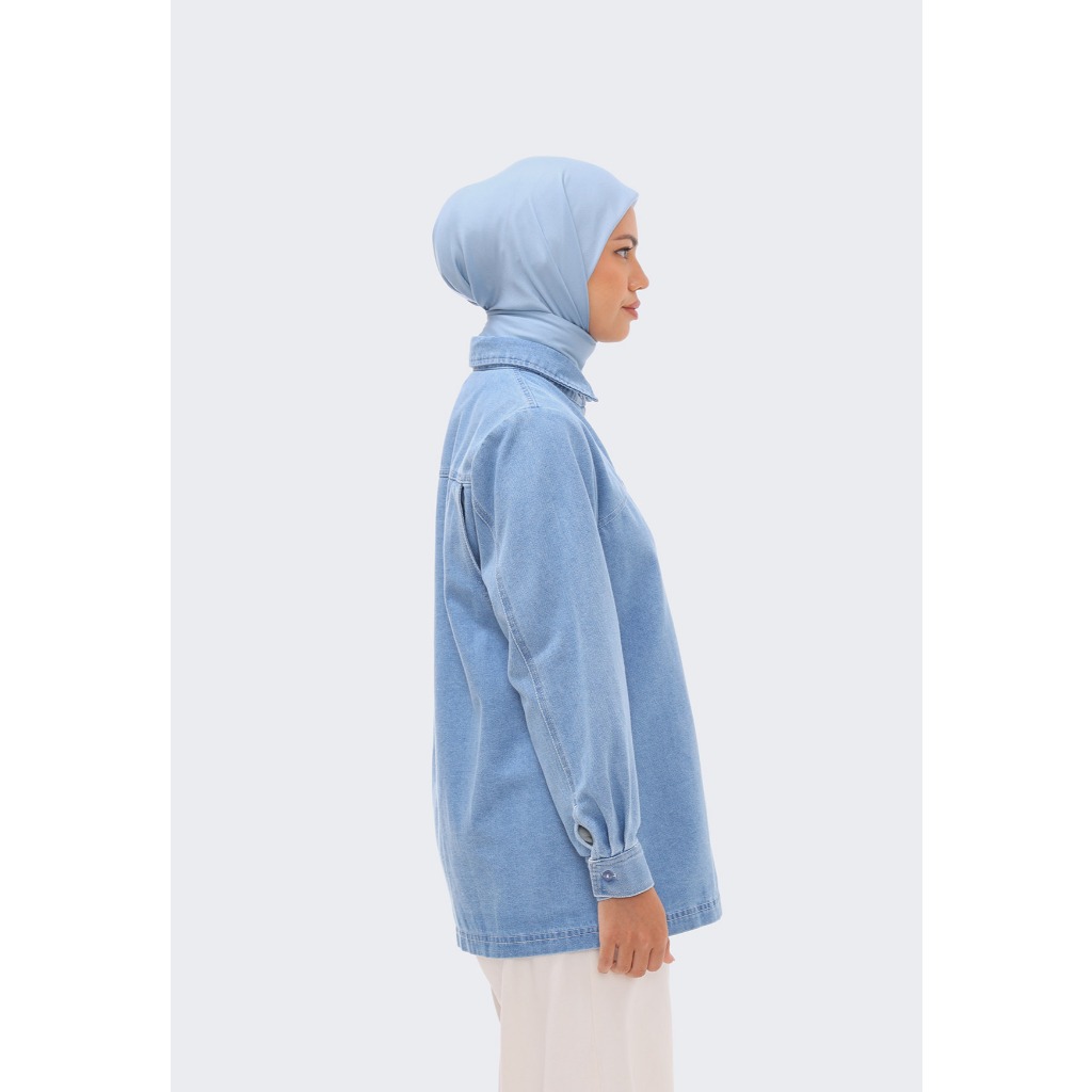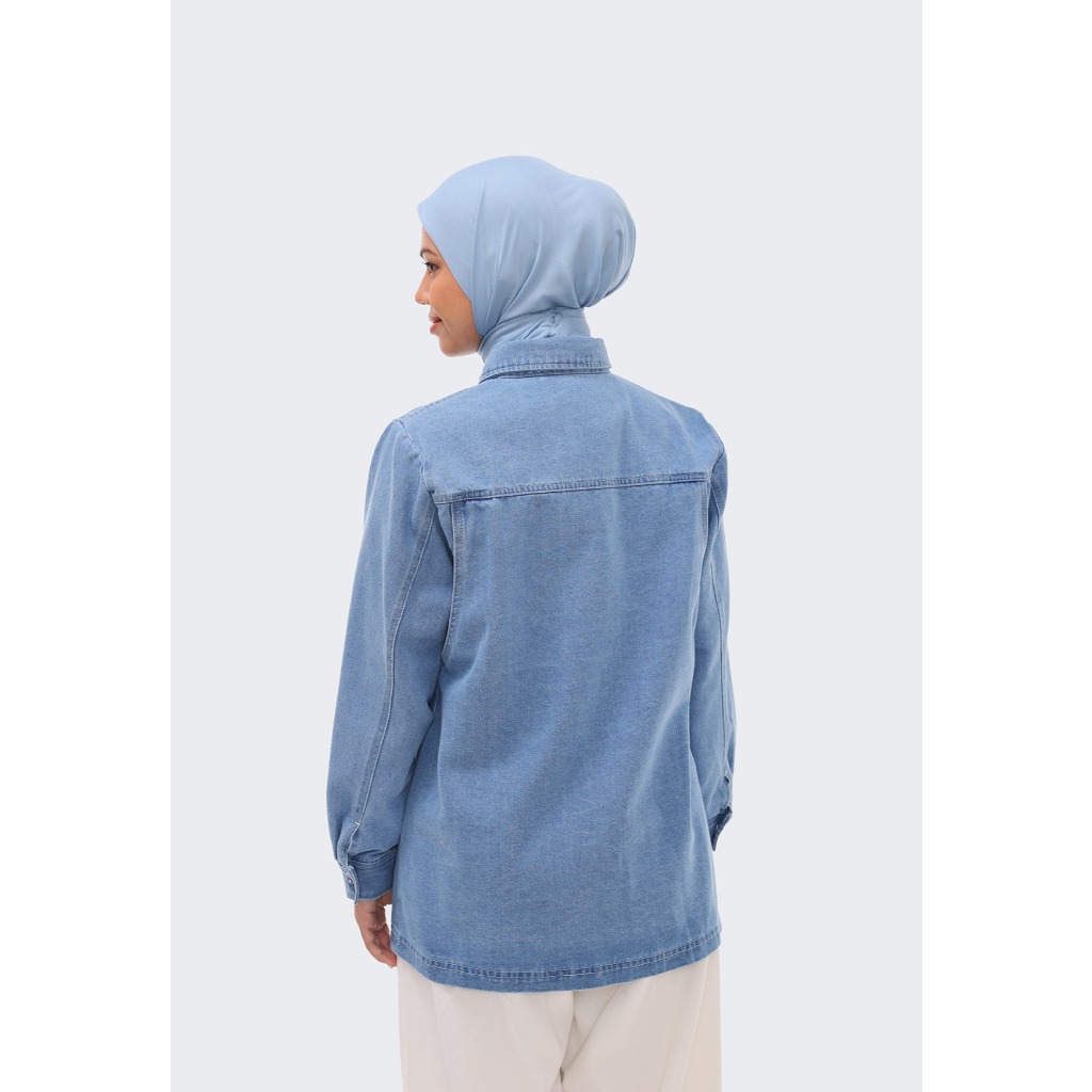 Baju wanita atasan blouse wanita kekinian jumbo Riamiranda Noa Shirt Terbaru Denim| Ria Miranda Official Shop