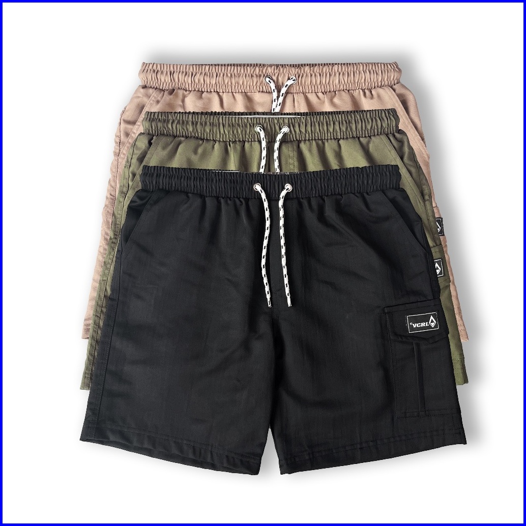 Vcrl- Celana Cargo Pendek Pria Boarshort Premium Tebal Hitam Basic Korean Style Skena