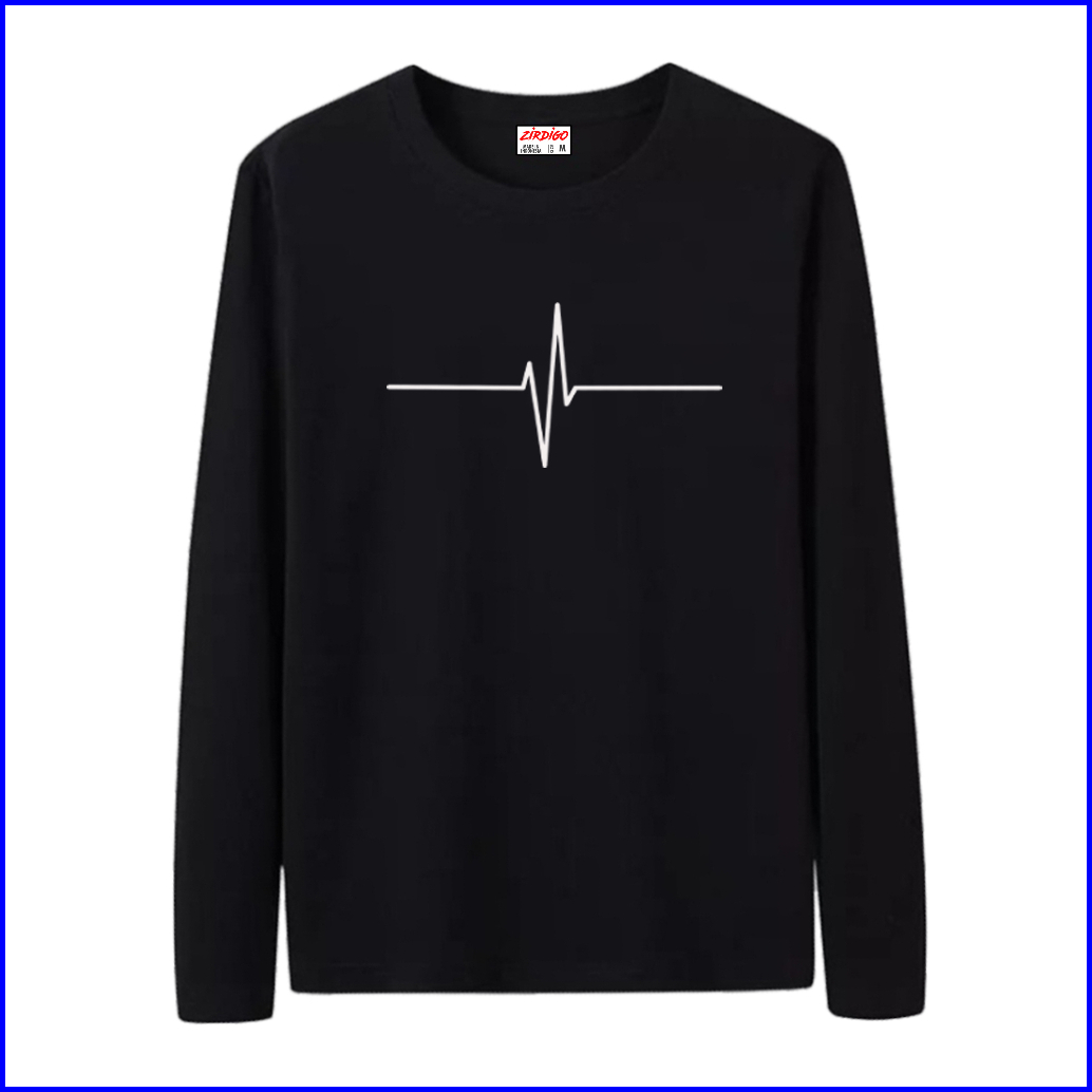 Zirdigo Kaos Distro Detak Jantung Text Putih Lengan Panjang Print Quality