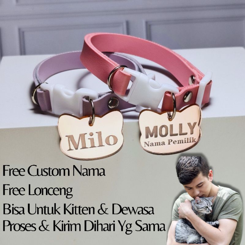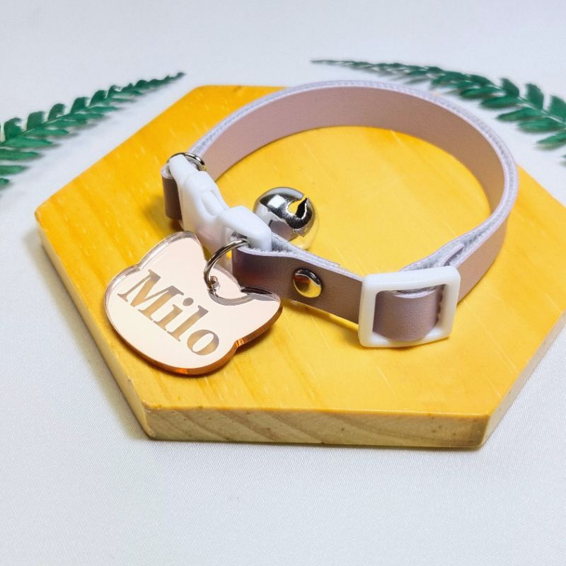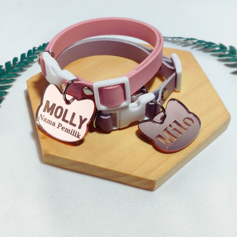 Kalung kucing nama custom free lonceng bahan akrilik rosegold