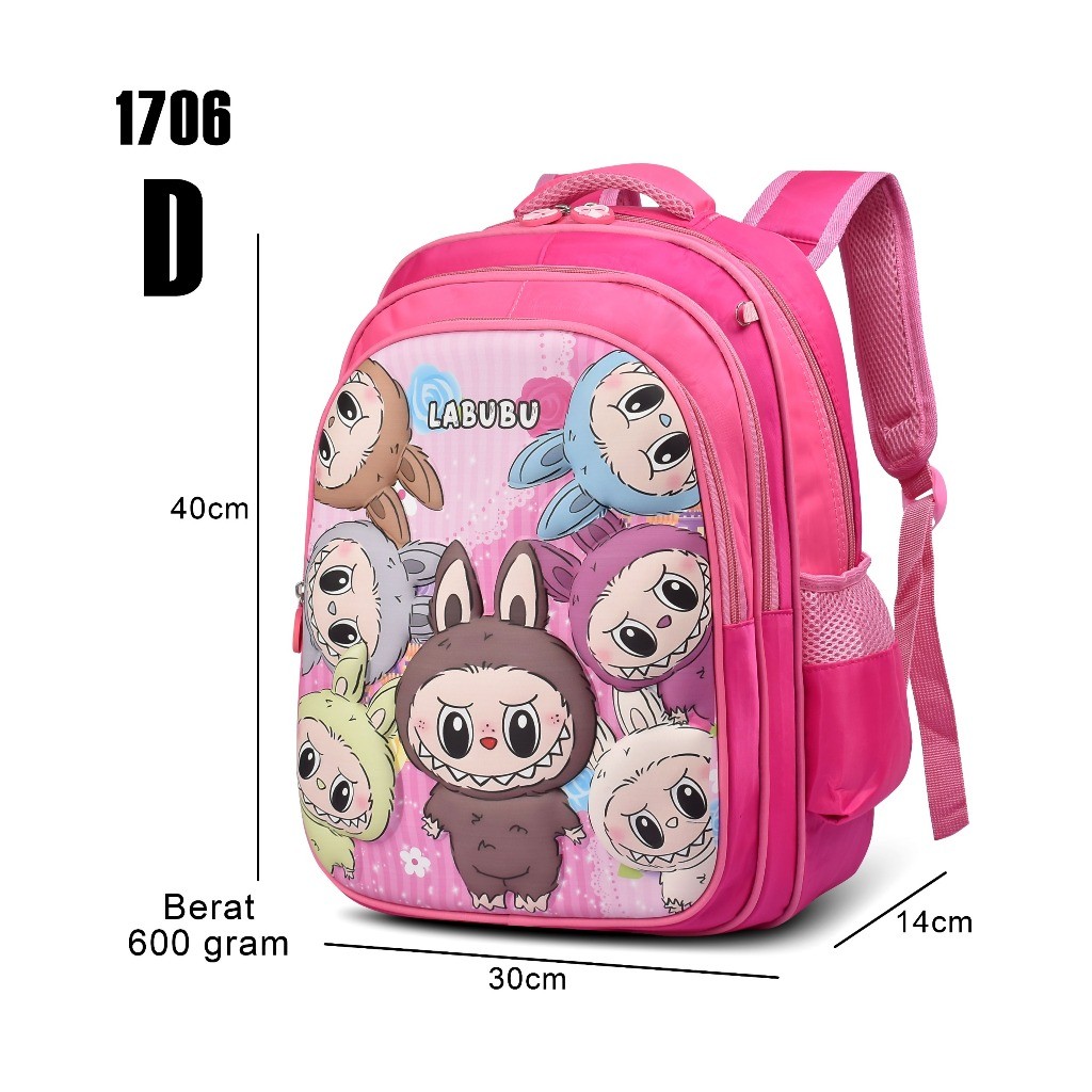 Tas Sekolah-Tas Labubu Cartoon 1706 Tas Backpack Sekolah Tas Ransel Anak-Tas Anak Perempuan