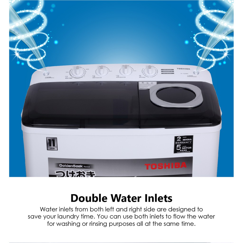 MESIN CUCI TOSHIBA 2 TABUNG KAPASITAS 13KG 7.5KG TWIN TUB CAPACITY BIG DILENGKAPI DENGAN SUPER JET SPIN BERGARANSI