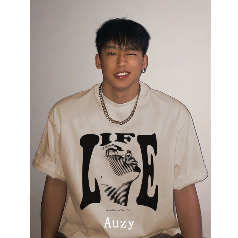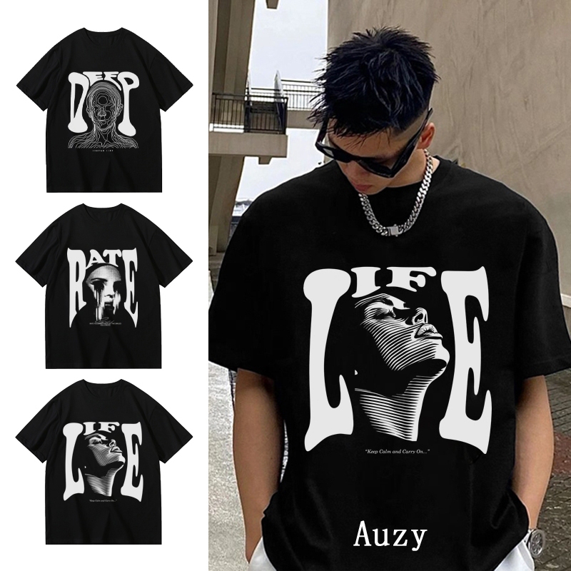 AUZY LIFE Gaya Hip Hop Abstrak kaos pria wanita T shirt baju oversize t shirt distro