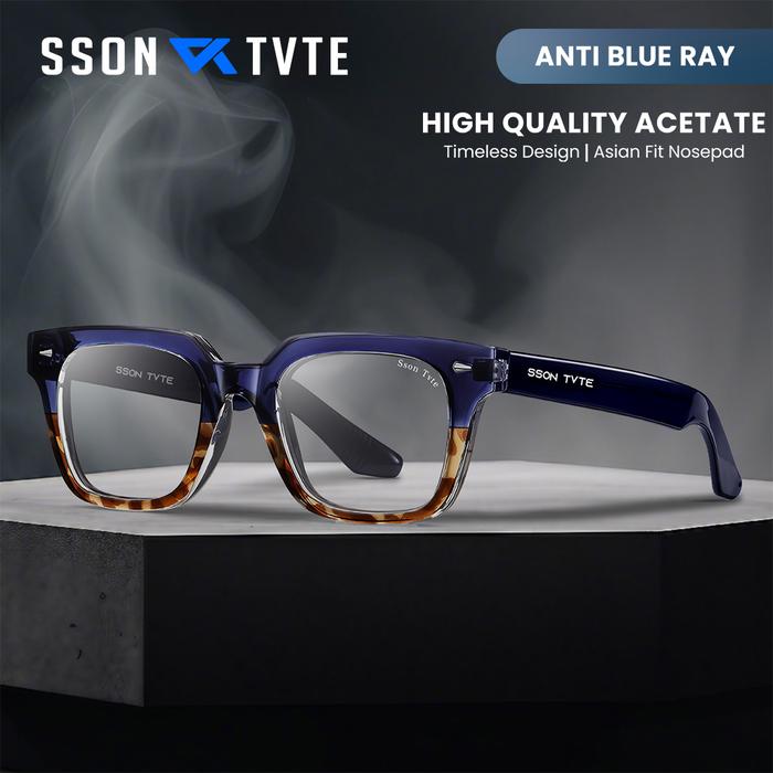 SSON TVTE KACAMATA LENSA MINUS PHOTOCROMIC ANTI BLUERAY KOTAK TRENDY PRIA WANITA TR ACECATE S31105AB - C1, BLUERAY NORMAL