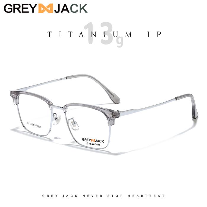 GREY JACK KACAMATA FRAME BAHAN TITANIUM MODEL KOTAK STYLISH PRIA WANITA STYLE BISNIS KEREN BISA MINUS 95052 - BLACK, FRAME SAJA