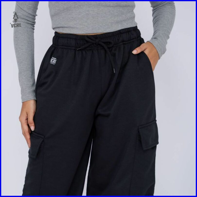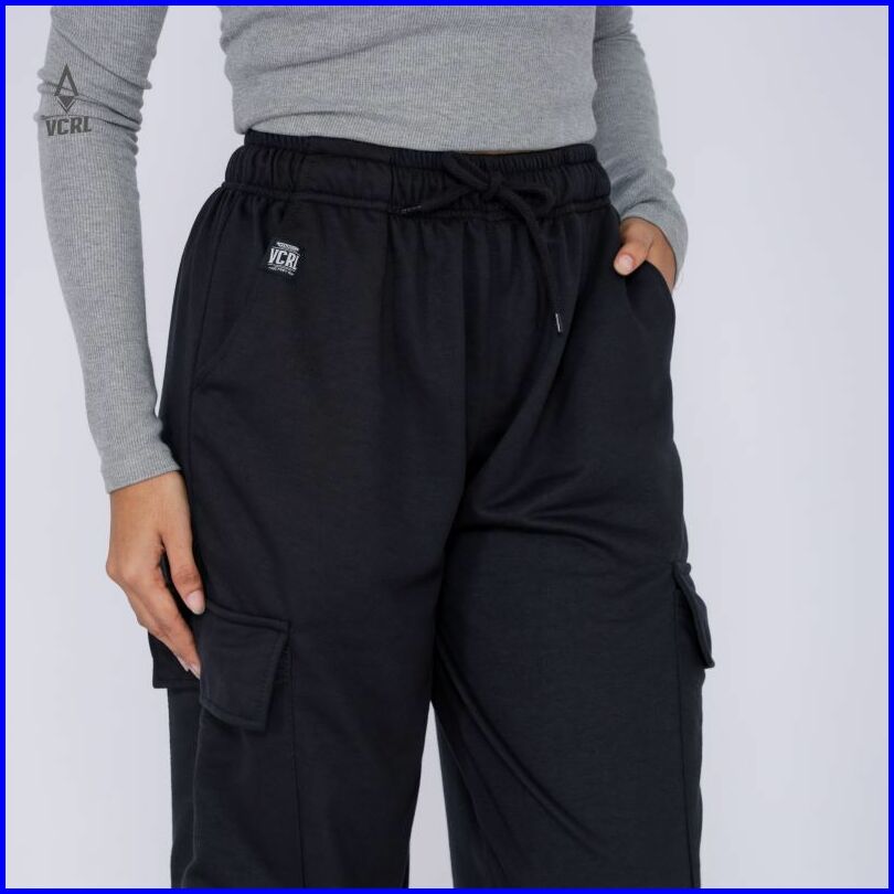 Vcrl Celana Cargo Pria Hitam Bahan Babyterry Tebal Premium Lembut Adem Nyaman Stylish Standar Jumbo