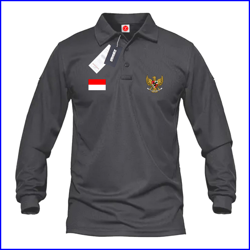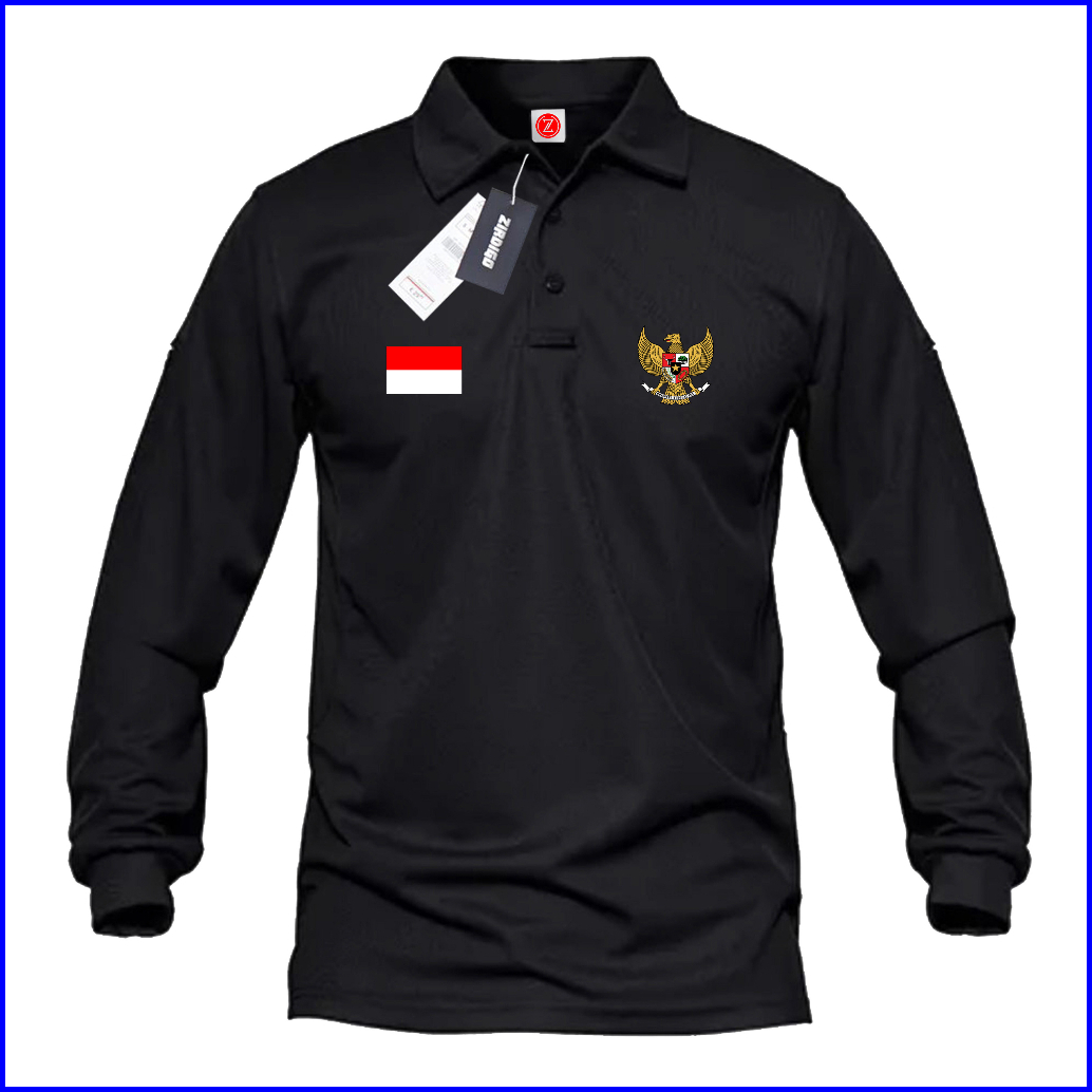 Zirdigo Kaos Polo Shirt Pria Kerah Lengan Panjang Hut Ri Garuda Mp2 Sablon Print Quality