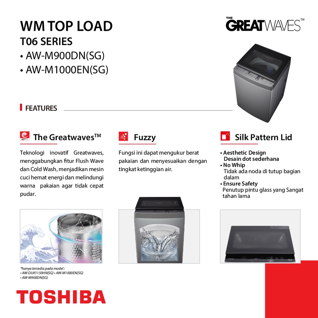 MESIN CUCI TOSHIBA 1 TABUNG TOP LOADING KAPASITAS 9KG 8KG 7KG PENCUCI BAJU BUKAAN ATAS LOW WATT BERGARANSI MURAH