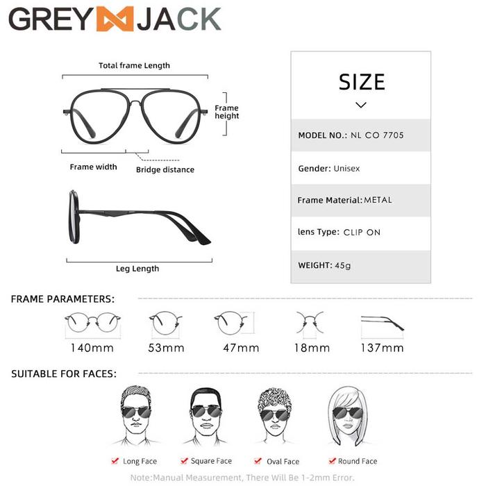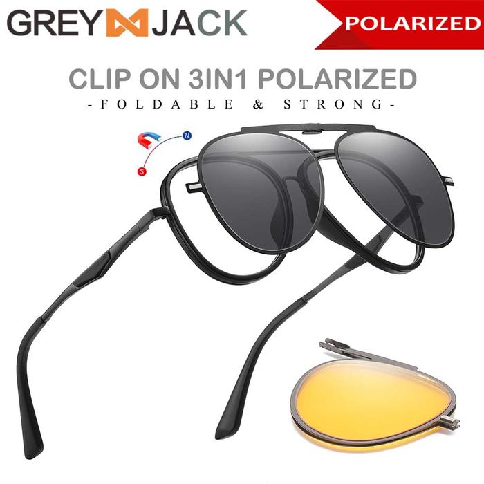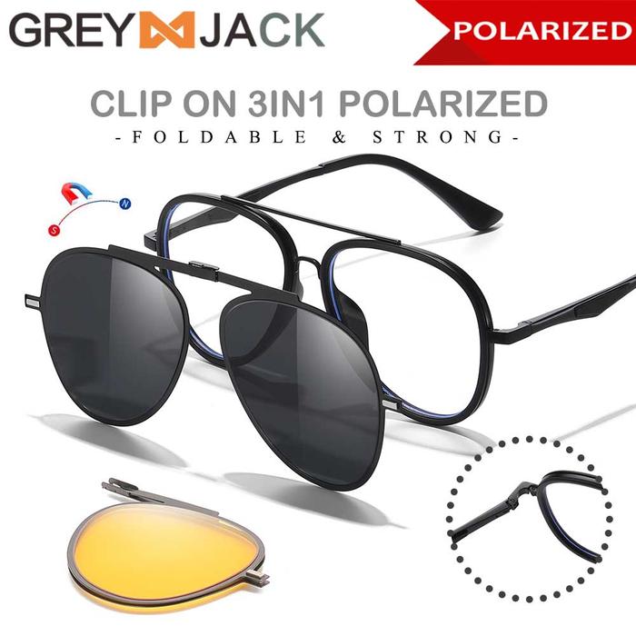GREY JACK KACAMATA CLIP ON 3IN1 FASHION PRIA WANITA FREE POLARIZED LENS BAHAN TR+METAL BISA MINUS ANTIRADIASI BLUECROMIC 7705 - BLACK GUN, FRAME SAJA