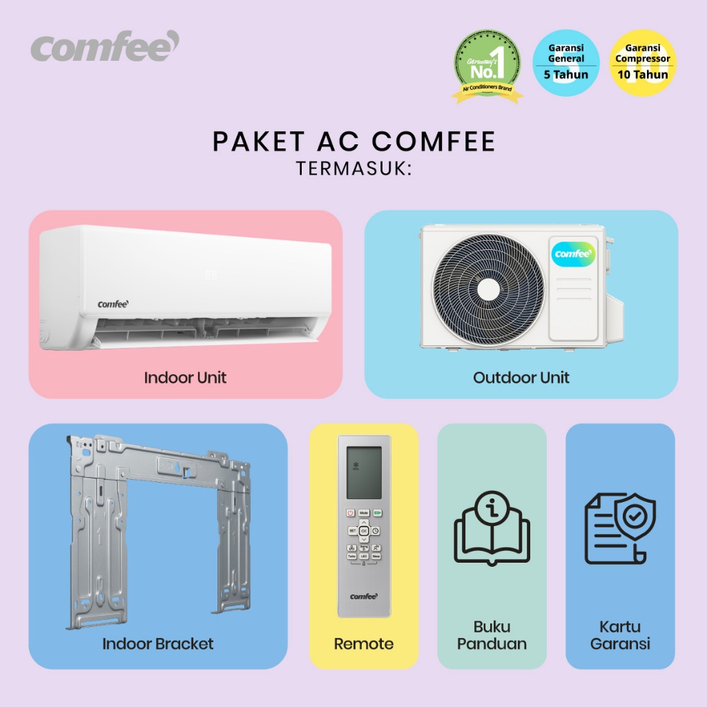 Comfee AC C-Flow Standard 1 PK (Unit Indoor & Outdoor) - CFS-09FST - Low Watt, AC Hemat Listrik, Anti Korosi