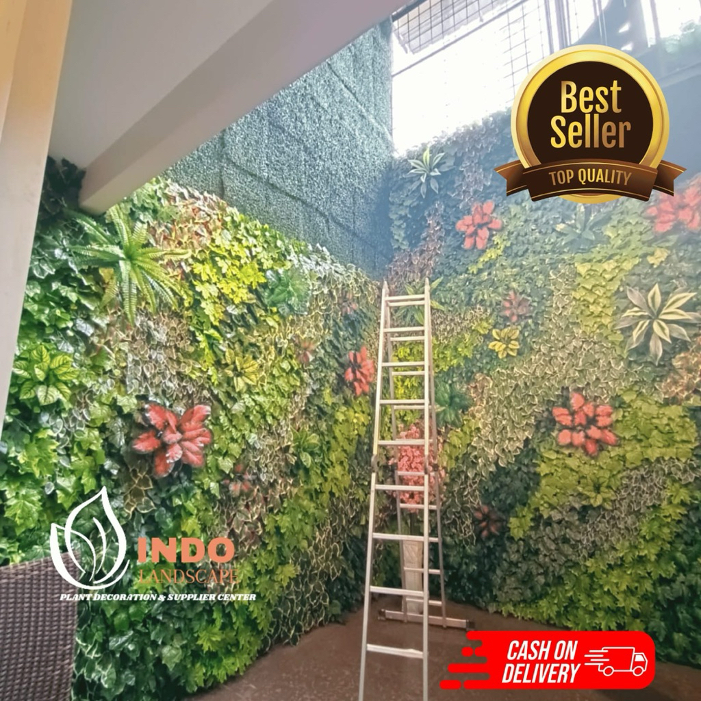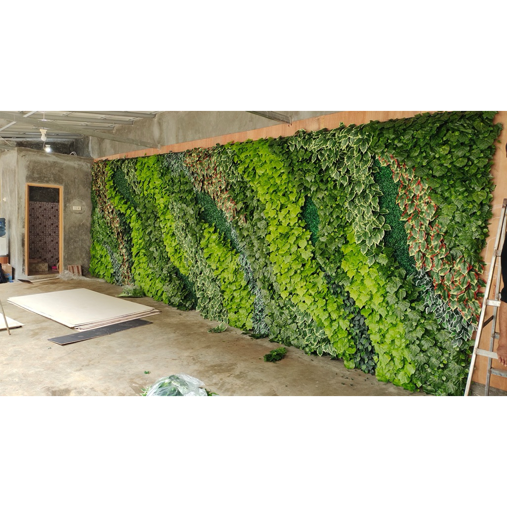 Hiasan Dinding Taman Vertical Garden Sintetis - Vertical Garden Artificial Dengan Berbagai Daun Sintetis Berkualitas - T