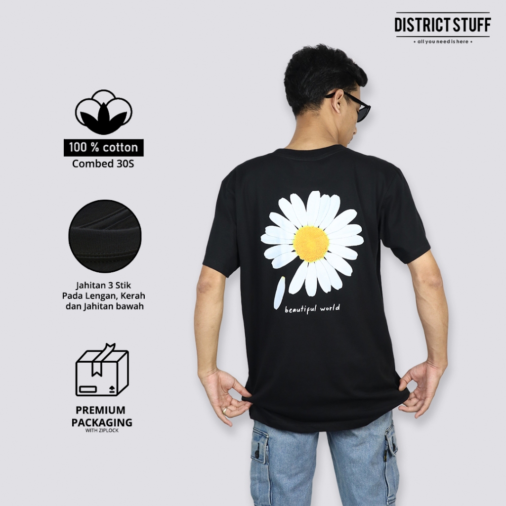 Kaos Hitam Beautiful World Tshirt Distro Pria Wanita Cotton Combed 24s